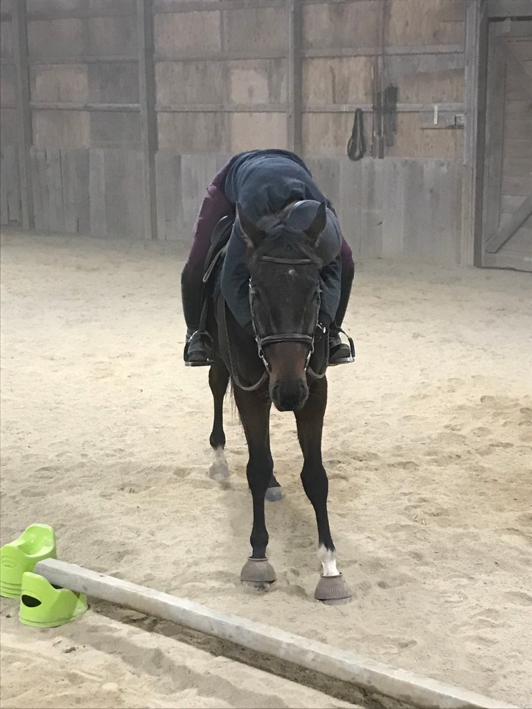 Buying a two-year-old let me take that pressure off of myself. Every single victory that I have with him now is as sweet as all of those victories that I had with my lease twelve years ago, no matter how small. It’s a victory when we get straightness at the trot on the right rein from the first transition – forget about bend. It’s a victory when he listens to me and adjusts as we come in to a set of trot poles. It’s a victory when we get even two steps of moderately balanced canter. Every single ride has its own victory, even if that victory is just having a ride where nothing is too frustrating, and yet I just… don’t think about it.