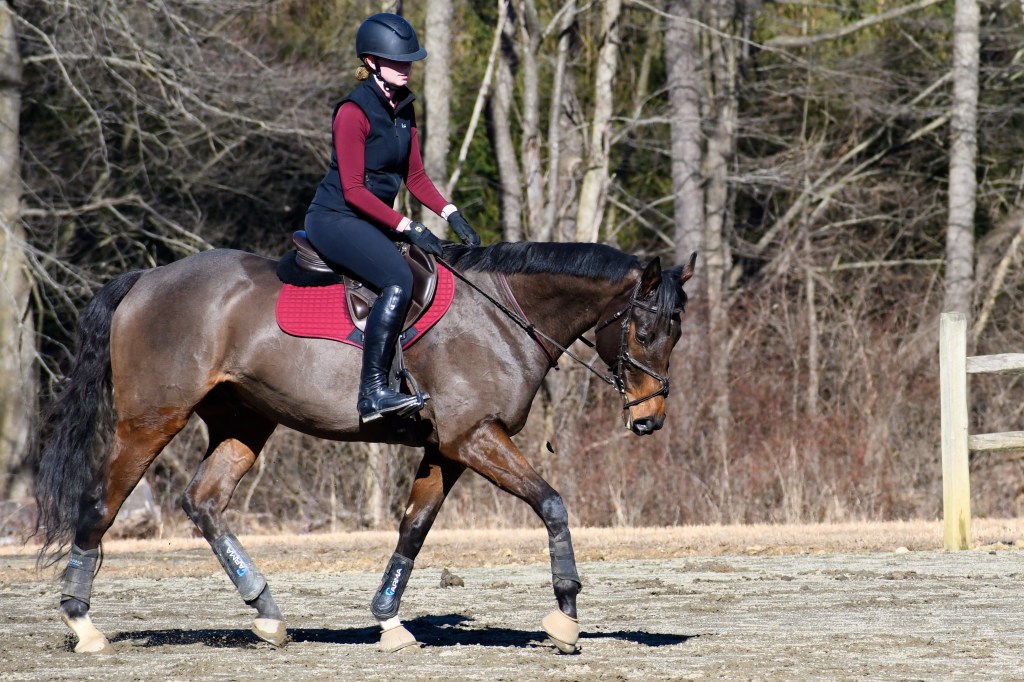 It sounds terrible, but I had never felt him like this before. I had never felt him properly push from the hind end, sit back into downward transitions rather than collapsing, actually lift his back and use himself because he finally could. He was stretching over his topline and even the moments where he wasn’t through weren’t horrible giraffe inverted experiences. Both of us had absolutely no fitness to speak of, so we started slow—twenty to thirty-minute rides, walking and trotting, no canter—and focused on restarting him yet again, properly. We picked back up a weekly thirty-minute walk/trot lesson to make sure that I (in all of my adult ammy glory) didn’t accidentally make him go around wrong again, and slowly and steadily, we both started to get stronger.